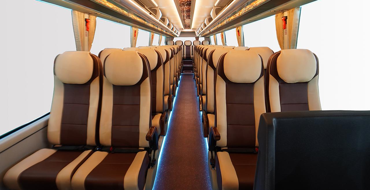 Nội thất của các dòng sản phẩm xe bus ghế ngồi được nghiên cứu thiết kế tinh giản mà đầy sang trọng. Hệ thống đèn trần cùng họa tiết chiếu sáng đa chiều với cường độ được điều chỉnh linh hoạt tạo không gian rộng rãi, năng động.