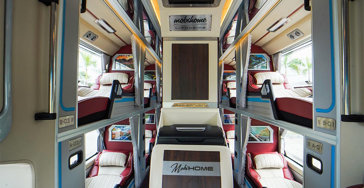 Khoang giường với phong cách thiết kế đậm dấu ấn không gian, tinh tế trong từng chi tiết, trang bị các tiện ích giải trí cao cấp cho từng khoang hành khách như: màn hình LCD, cổng kết nối USB, cổng sạc điện thoại di động, đèn đọc sách, hộc đồ cá nhân, khay đựng nước.